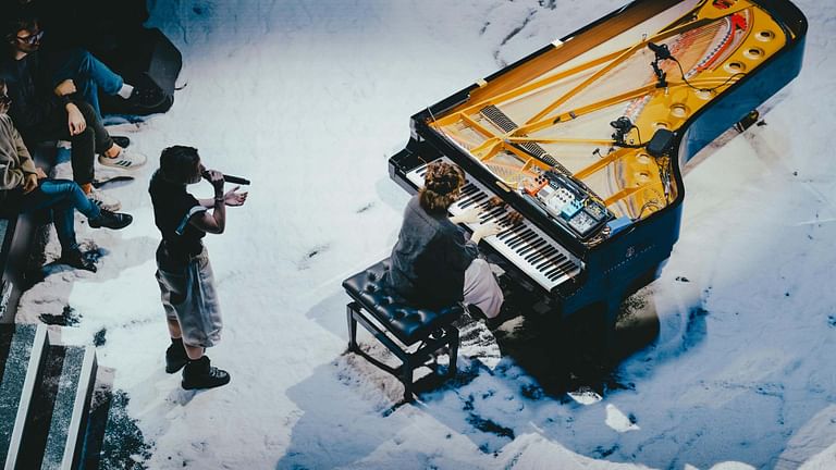 Friands de rencontres inédites, nous lui avons suggéré de travailler pour l’édition 2025 de notre Piano Day avec Marguerite Thiam. Déjà comédienne et réalisatrice de talent, cette touche-à-tout a aussi prouvé ses dons de chanteuse, autrice et compositrice avec la sortie de l’album COMME LES GRANDS en 2023. Cet univers d’une grande sensibilité a vu le jour en collaboration avec son frère, Aliou.