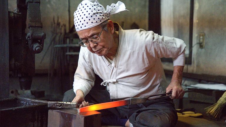 În Yamagata, un maestru fierar modelează săbii folosind tehnica celor trei oțeluri, o metodă artizanală unicată.